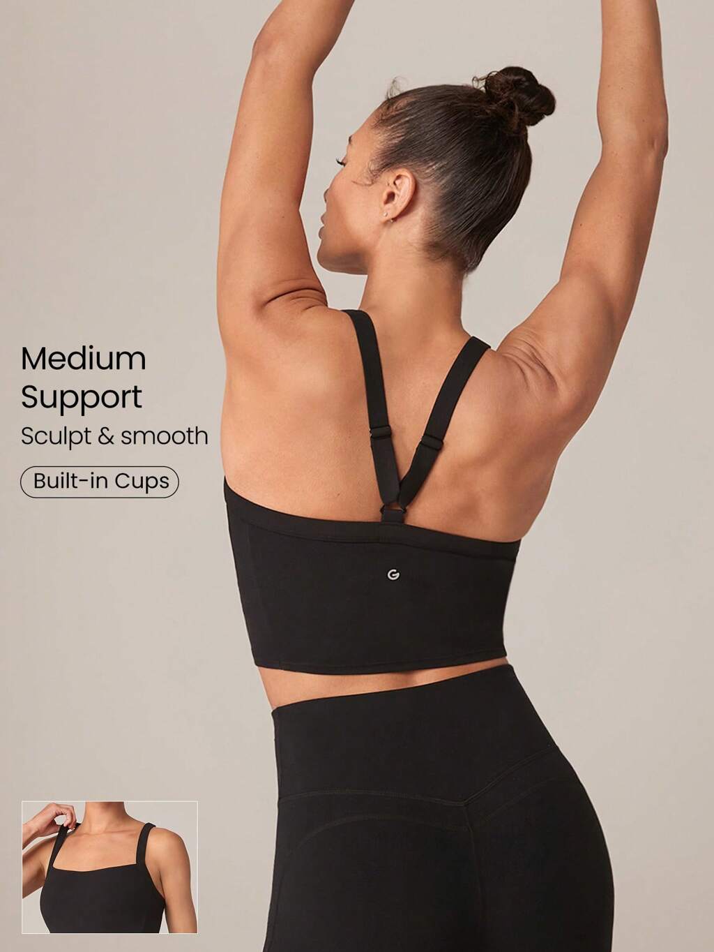 Medium Impact FeatherFit™-Sculpt Built-In Cups Adjustable V Back Square Neck Jogging Running Training