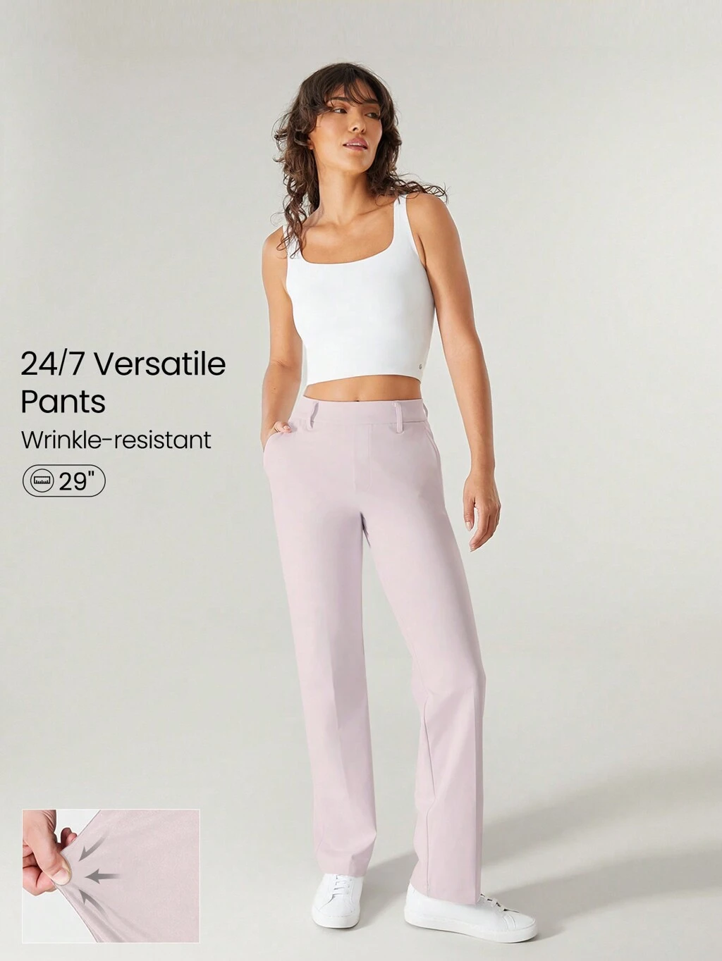 29" Versatile Wrinkle-Resistant Stretchy Straight Leg High-Waist Work Pants With Side Pockets Daily Casual Office