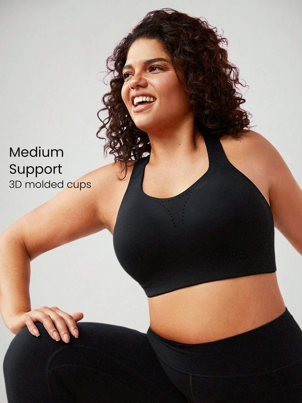 Plus Medium Support Black Convertible Wide Adjustable Strap Full Coverage Sports Bra Yoga Pilates Plus Size Sports Bra