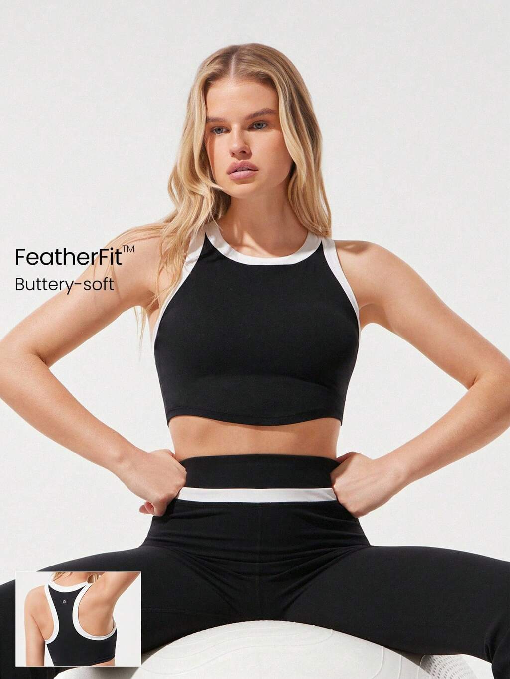 FeatherFit™ Bold Glow Soft Sweat-Wicking Stretchy Contrast Color Trim Removable Cups Wide Edge Racerback Cropped Tank Top Low-Impact Yoga Pilates Studio Gym Daily Active Spring Summer