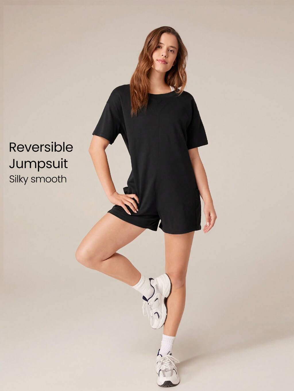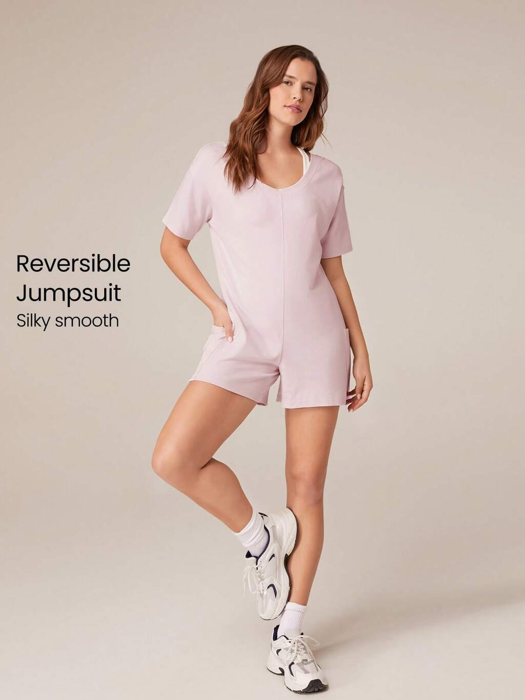 Modal Take It Easy Reversible Short Sleeves Romper Jumpsuit With Side Large Pocket Daily Casual Spring Summer