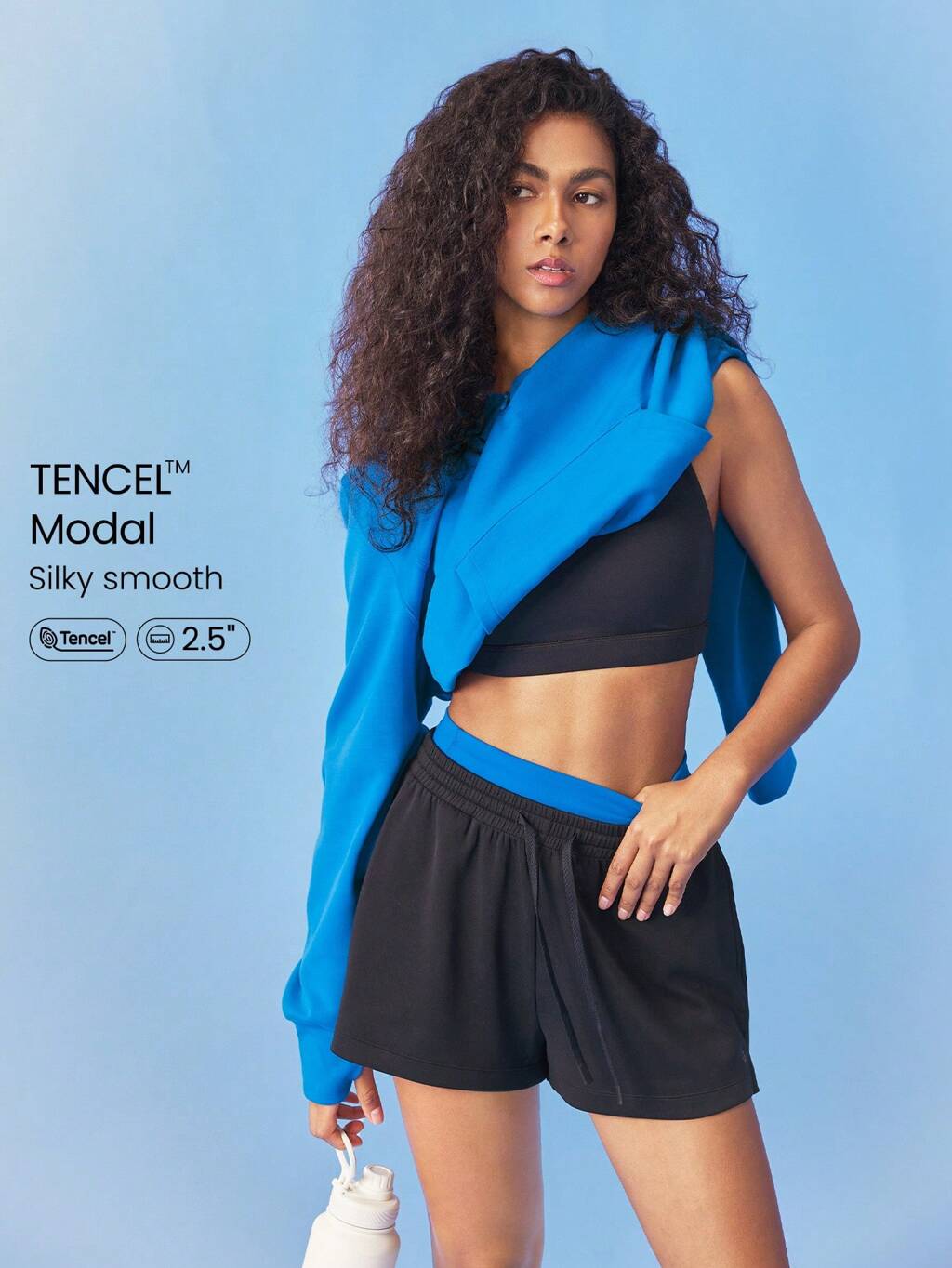 Modal Silky Smooth Light Lounge Adjustable Drawstring Waist Basic Shorts With Side Pockets Daily Casual Wear