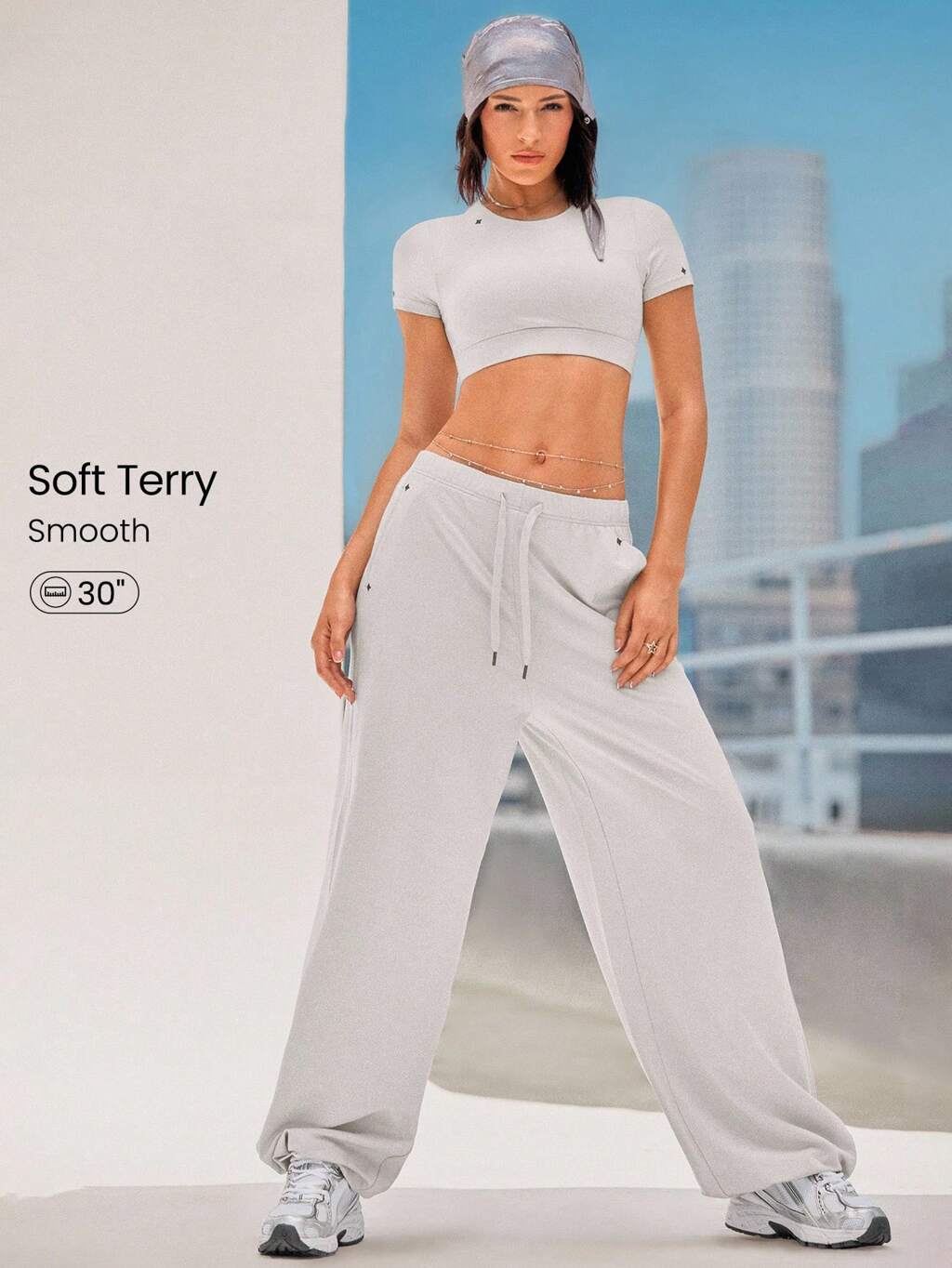 Bewegen und profilieren Sie weiche, glatte, reflektierende Taschen mit Kordelzug Taille, Oversized, weite Jogginghose für den täglichen Lässig-Stil