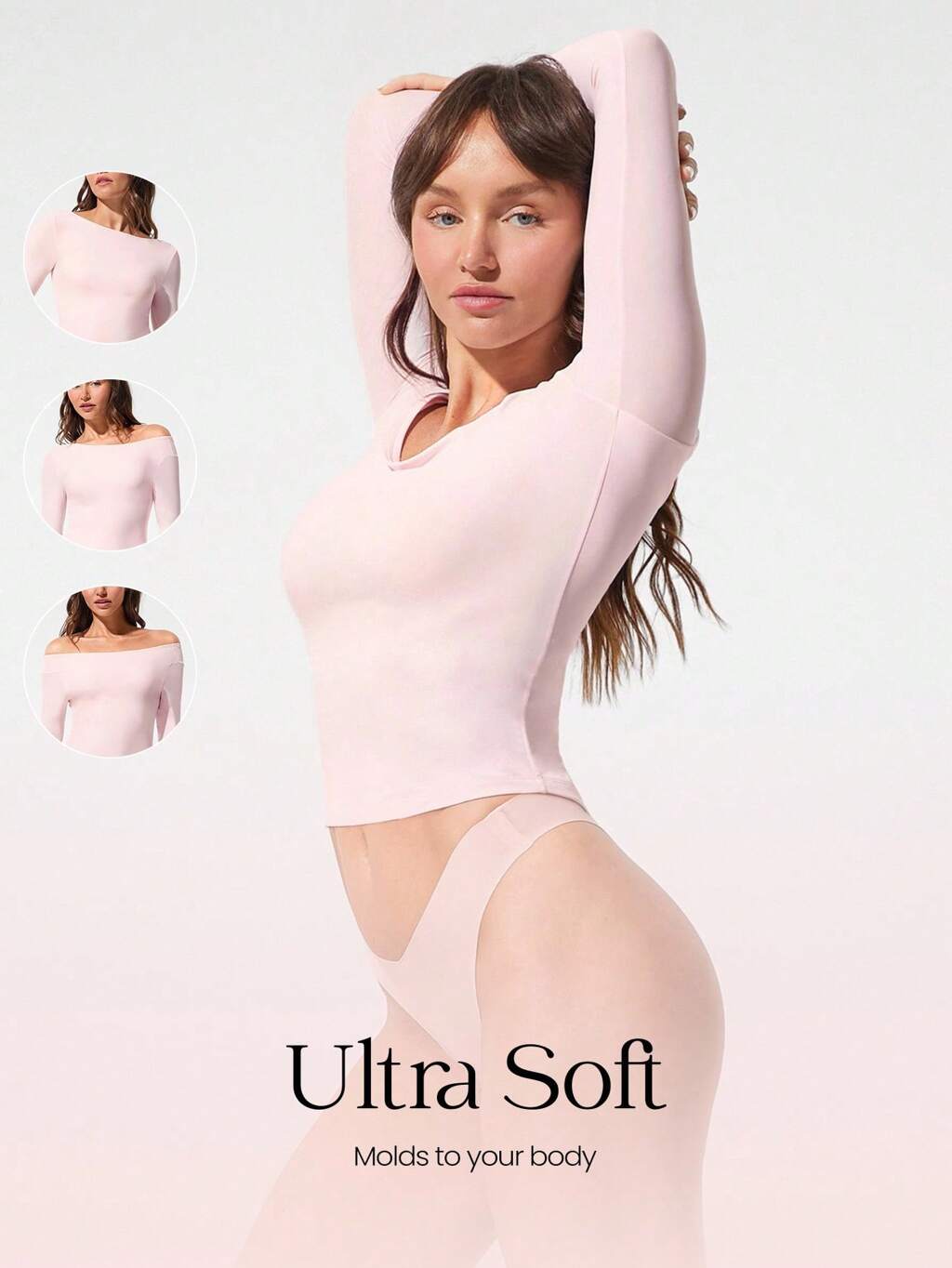 Fließender & leuchtender Weicher dehnbarer leichter Slim Fit Doppelschicht umkehrbarer Rundausschnitt Langarm Oberteil als Basis zum täglichen Tragen