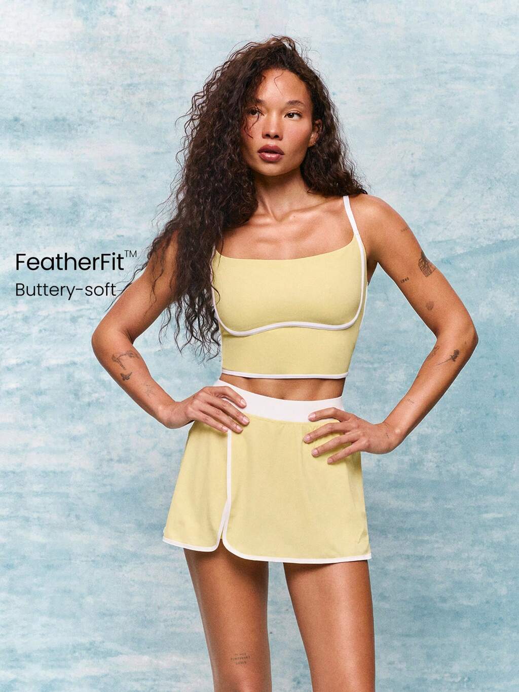 FeatherFit™ Korsett-Effekt Sport-BH mit quadratischem Ausschnitt, leichter Halt, für Yoga-Studio, Fitnessstudio oder den täglichen Gebrauch
