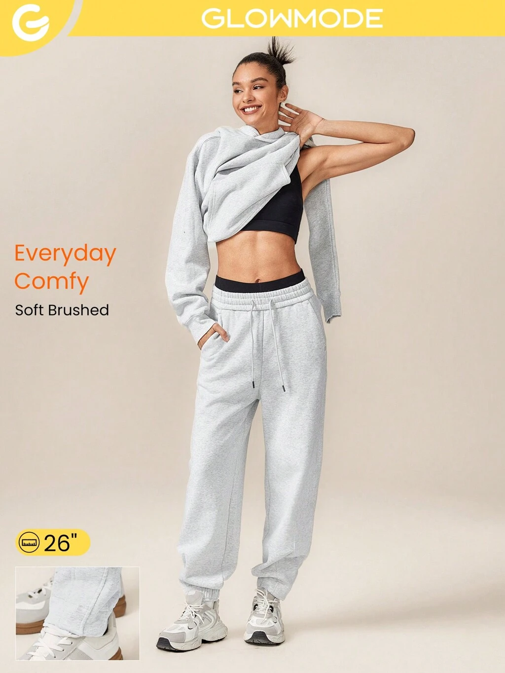26" Joggers de felpa suelta de uso diario con ajuste de cordón en la cintura, dobladillo plisado y bolsillos laterales, de uso casual diario
