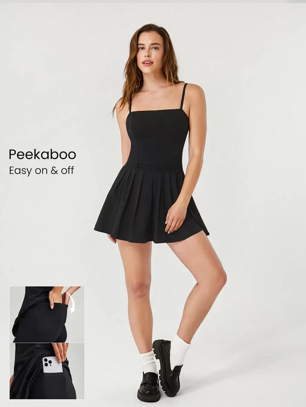 Vestido diario casual con escote cuadrado, pliegues, cinturón y short incorporado, con copas desmontables, de la colección FeatherFit™-Air Peekaboo Limitless