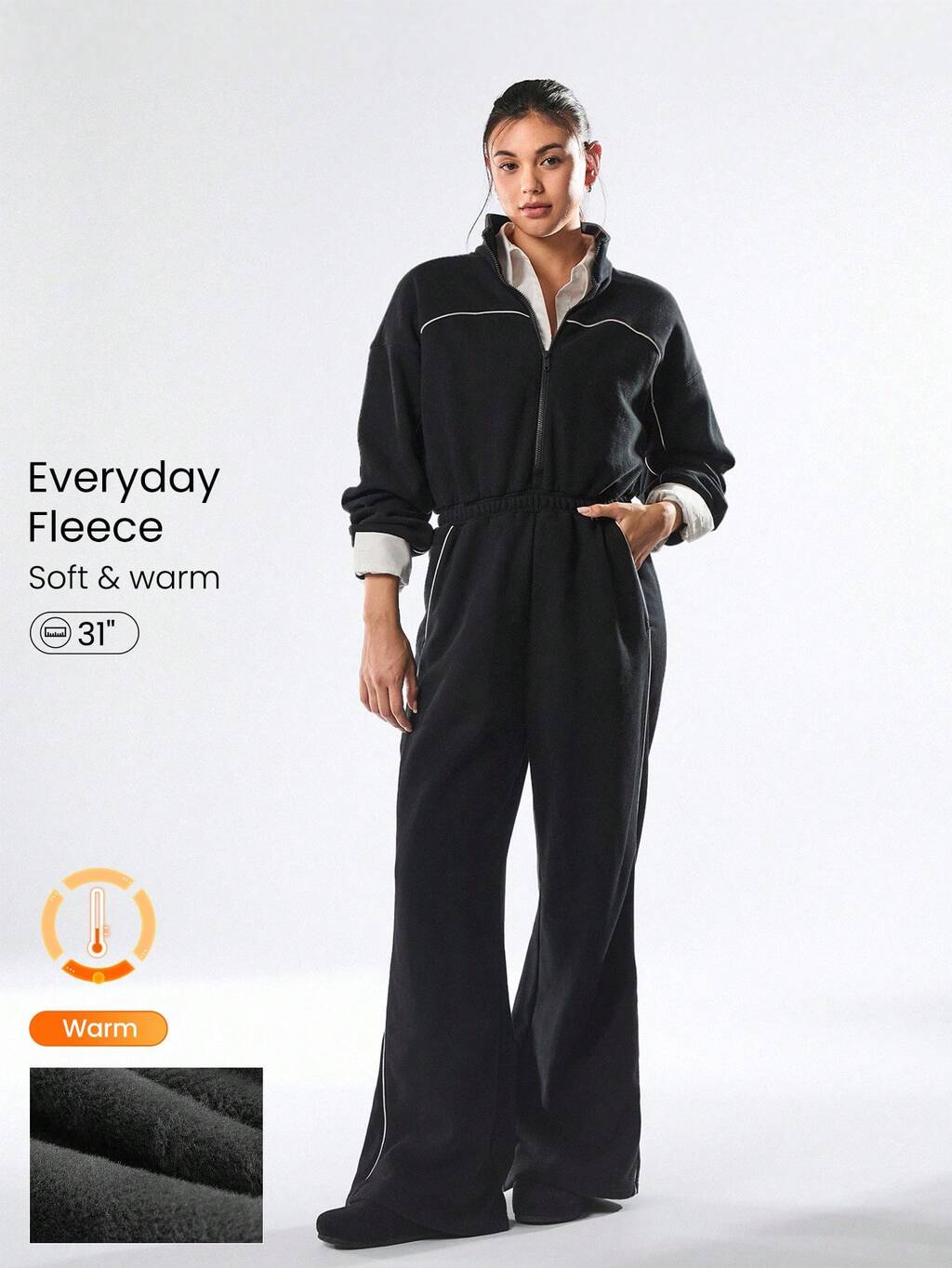 31" Mono de tela polar suave y ligero con cremallera frontal, rayas de contraste, bolsillos laterales y efecto levantador de glúteos, para uso diario y casual en otoño e invierno