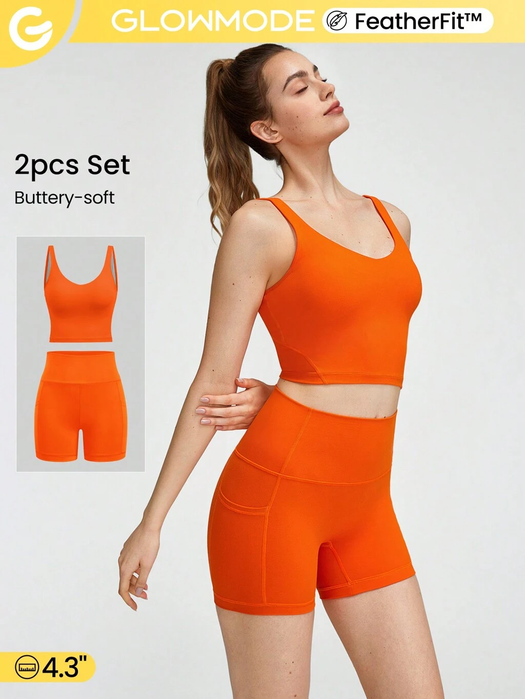 Juego de tanque corto y pantalones cortos de bicicleta de control abdominal de 4,3" FeatherFit™ con espalda en forma de U para actividades de bajo impacto diarias de yoga