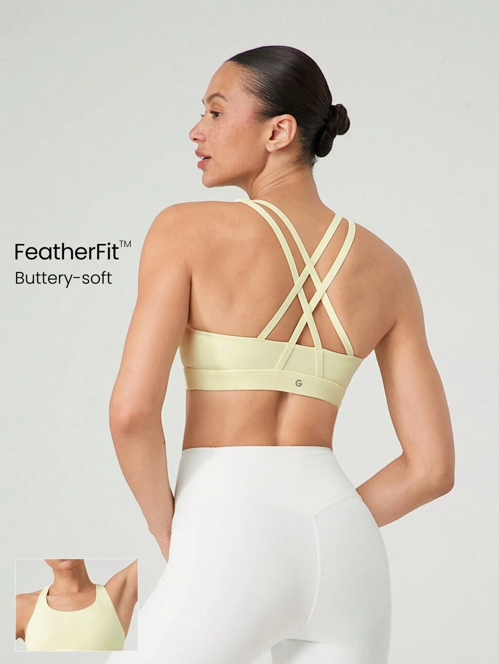 FeatherFit™ Espalda en acción Busto ceñido Espalda cruzada abierta Copas desmontables Sujetador deportivo con tirantes Bajo impacto Yoga Pilates Estudio Gimnasio Entrenamiento Uso diario Ropa activa