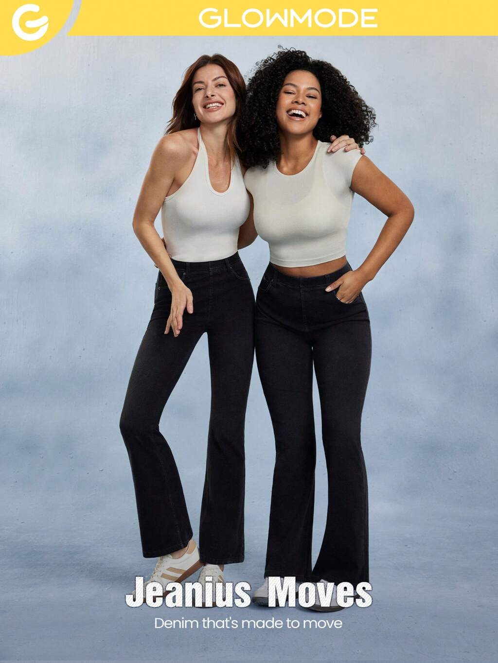Jeans évasés en denim classique ultra-stretch Jeanious Jflare avec cinq poches, pour le yoga et le quotidien