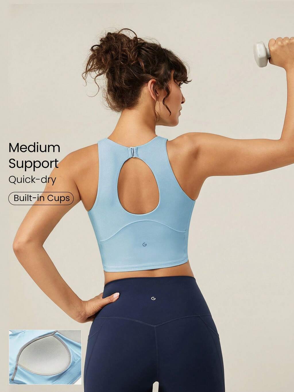 FeatherFit™ U Neck U Back Cropped Sports Bra Tank Top Low Impact Yoga Pilates Daily Removable Cups