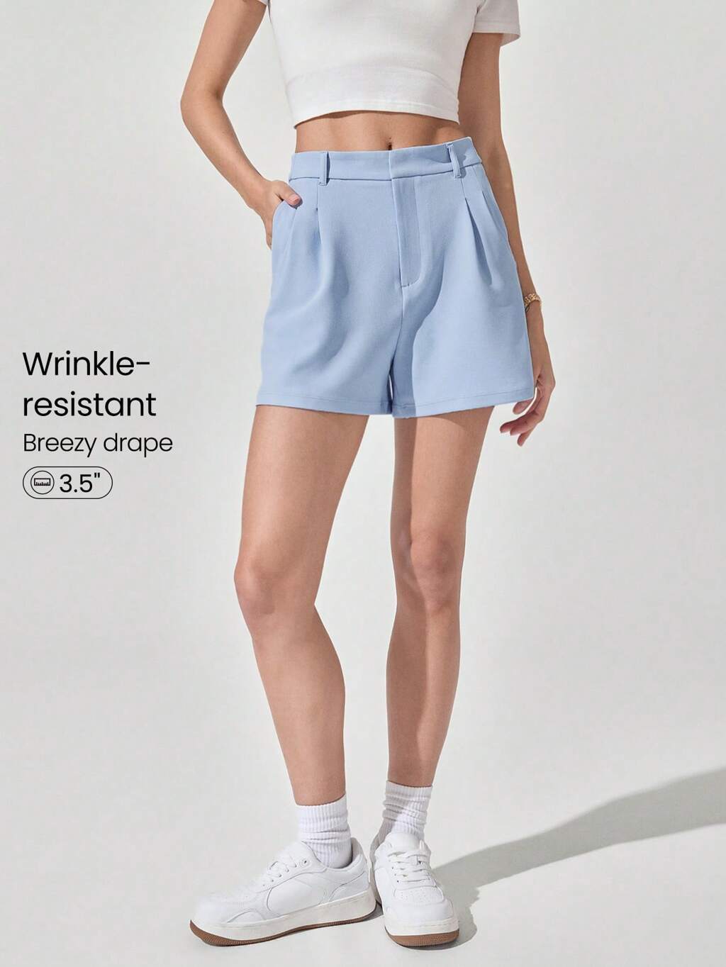 Short de travail à fermeture éclair avant, avec taille élastique résistant aux rides, poches latérales. Idéal pour le travail de bureau, les loisirs et le quotidien