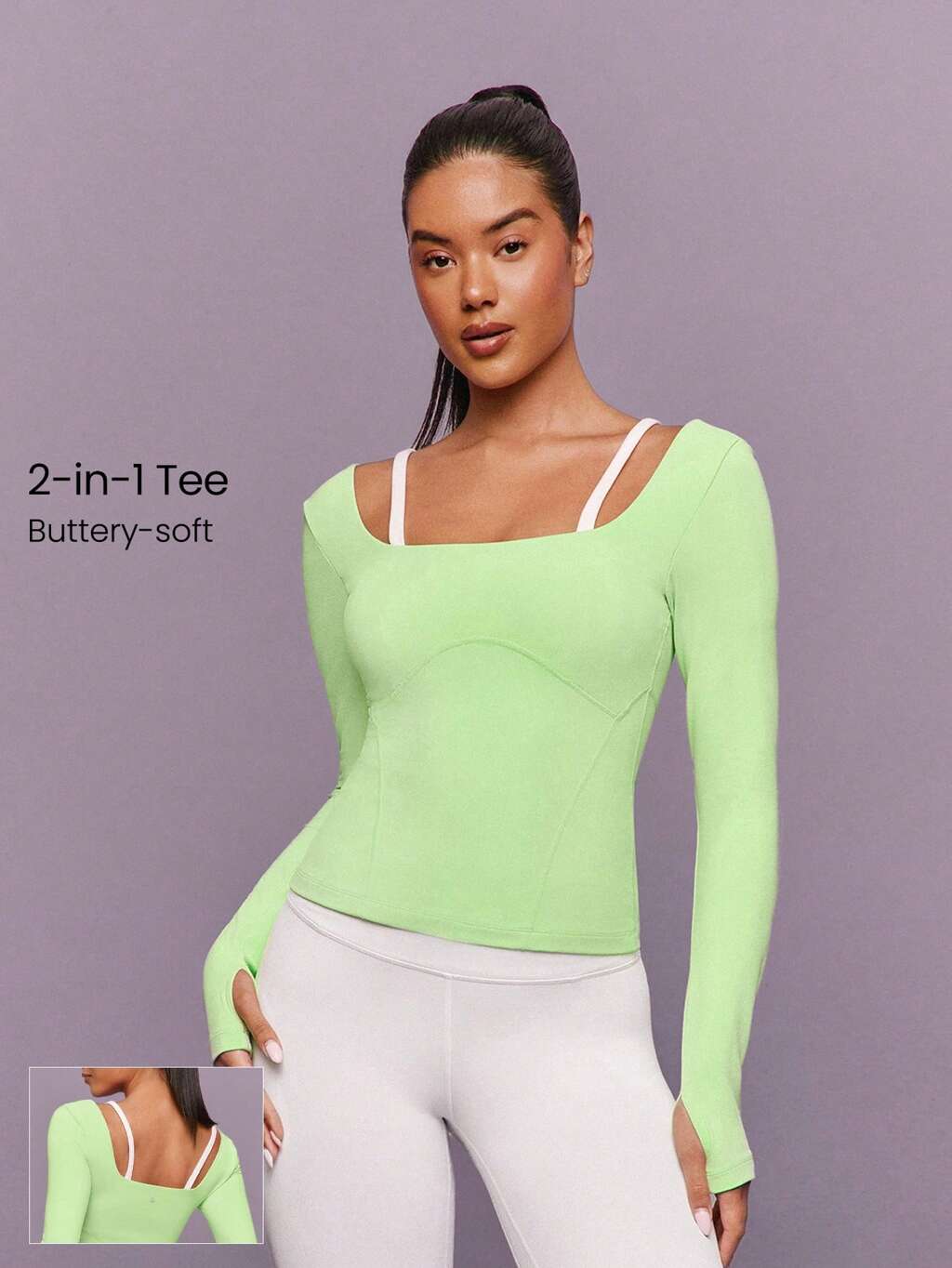 Top a maniche lunghe con polsini per il pollice, in cotone Pima lavato vintage, adatto per palestra, studio, escursioni, uso quotidiano e casual