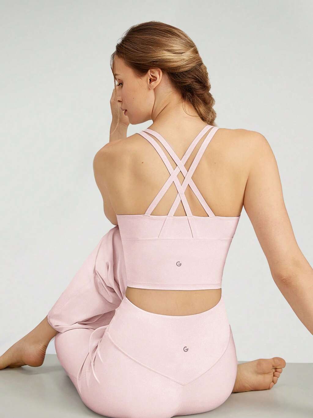 Reggiseno FeatherFit™ con spalline sottili a incrocio, scollo a cuore, coppe estraibili senza cuciture per basso impatto, adatto per yoga e uso quotidiano