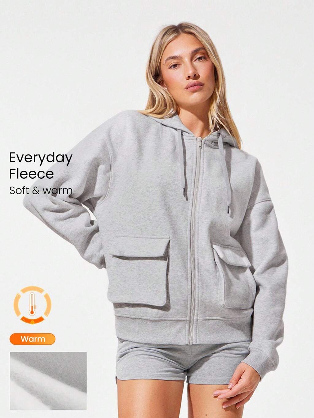 Felpa con cappuccio e chiusura lampo, con tasche cargo, morbida, leggera e comoda, di taglia oversize, per uso quotidiano e casual