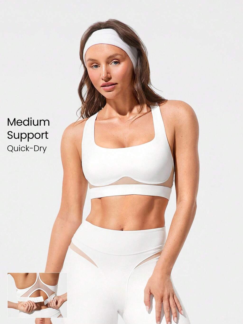 FeatherFit™ Stand Out Buttery-Soft Stretchy Sweat-Wicking Push-Up Removable Cups Strappy Mesh Sports Bra Low Impact Yoga Pilates Barre Studio Daily Casual Wear Spring Summer