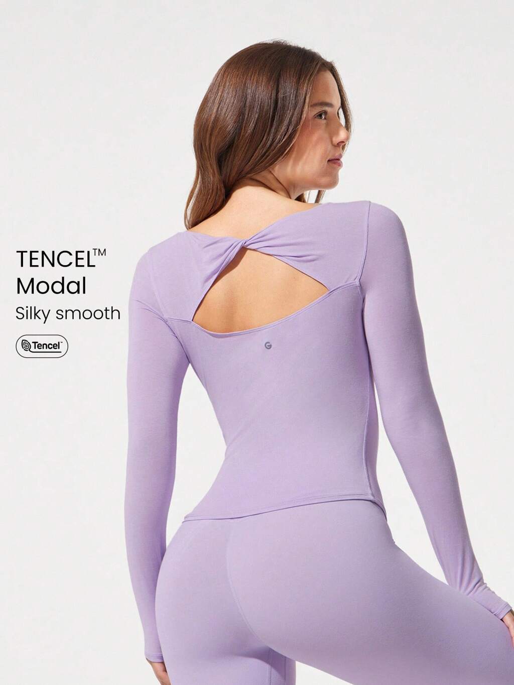 Maglietta attiva a maniche corte con scollo a barca, con nodo sulla schiena, in materiale TENCEL™ Modal, liscia e setosa, per uso casual quotidiano