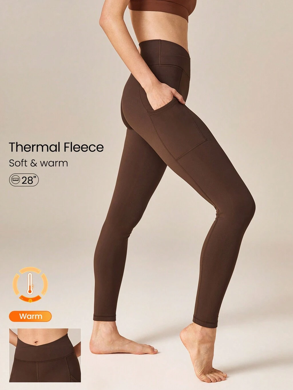Leggings a vita alta incrociati a V in pile da 28", con tasche, adatti per l'autunno e l'inverno