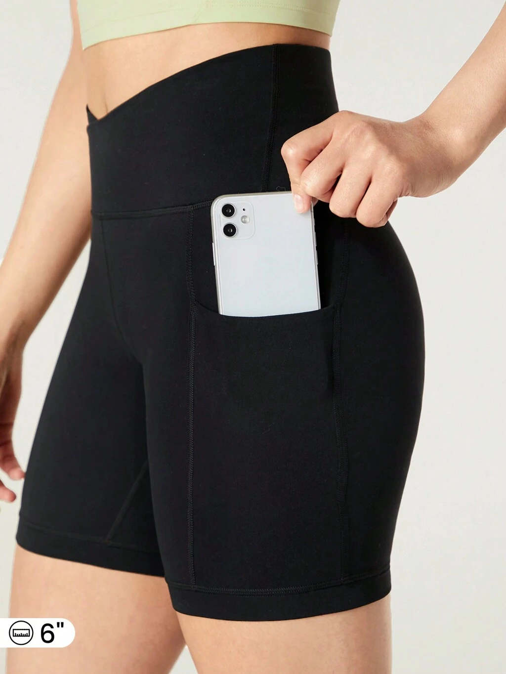 Short Da Ciclismo Crossover A Vita Alta Risvolto A Piuma Da 8 Pollici Per Allenamento In Palestra, Corsa O Ciclismo
