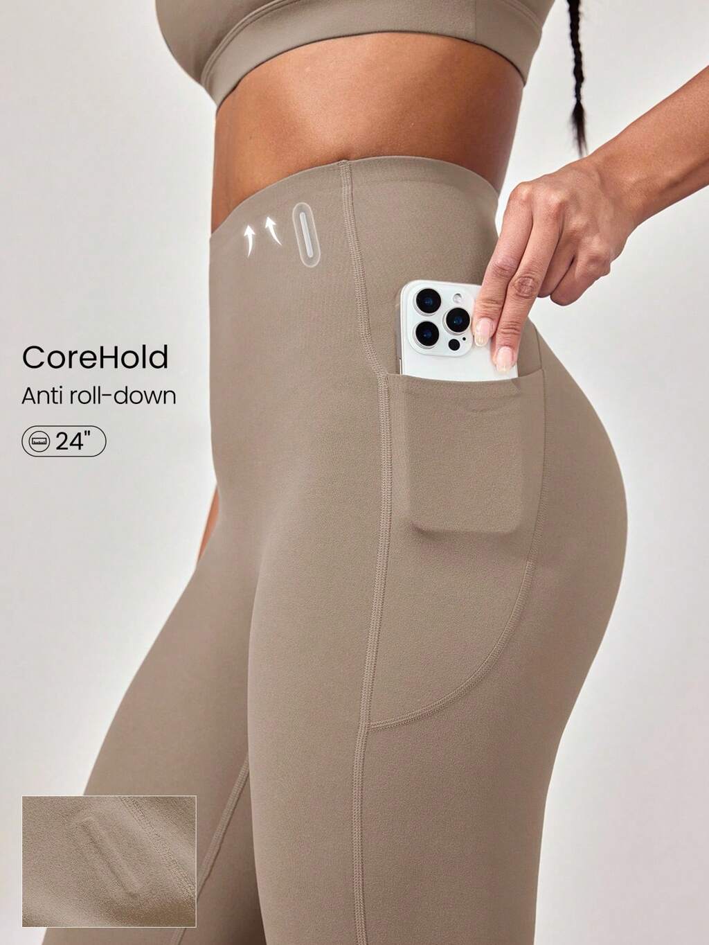 24" CoreHold FeatherFit™-Sculpt CoreHold Senza Scivolare Vestibilità Stecche Controllo Pancia Senza Cucitura Frontale Leggings Con Tasche Laterali Allenamento A Impatto Medio Jogging Palestra