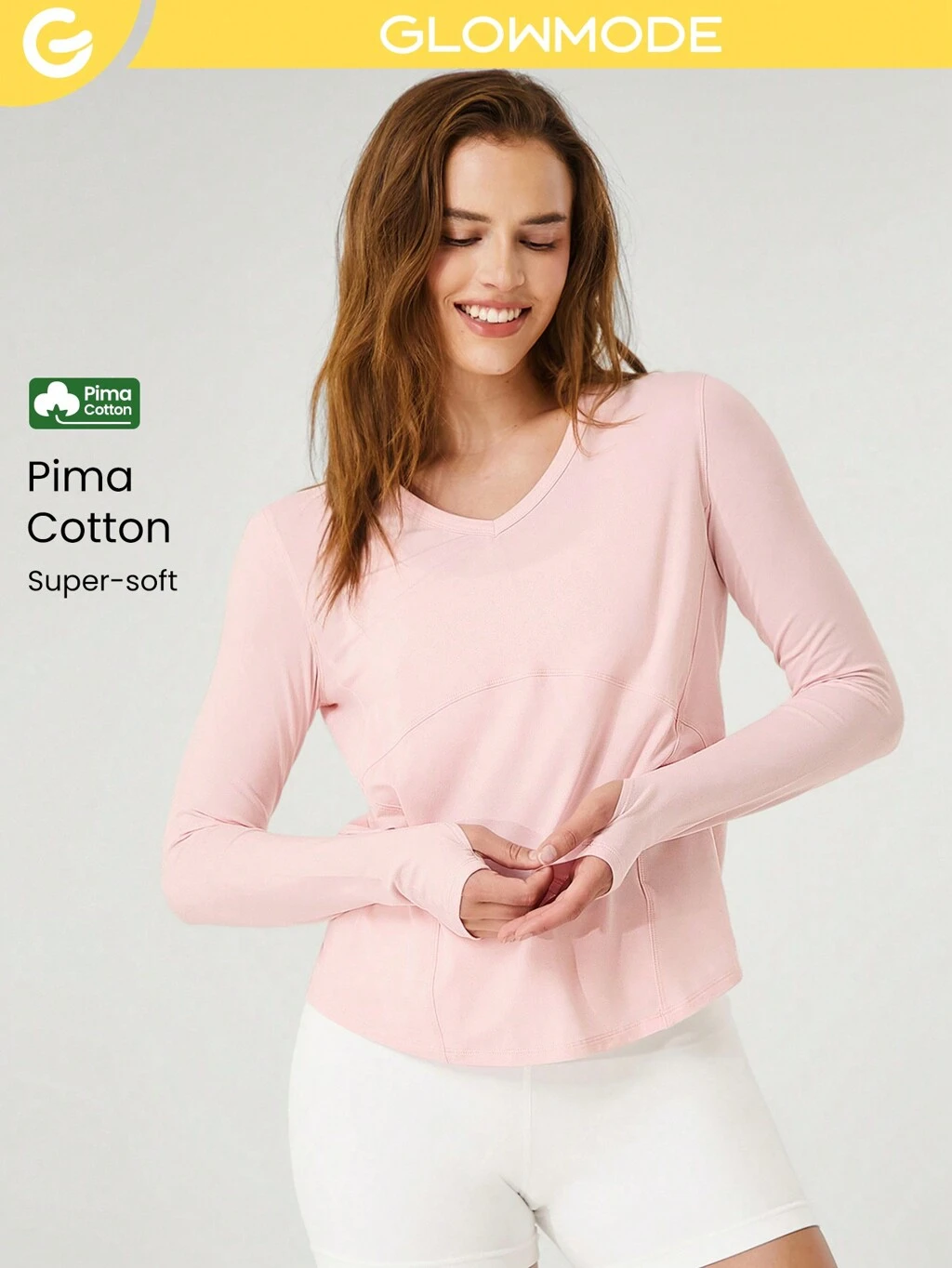 ピーマコットン Vネック 長袖 レギュラーフィット Tシャツ サムホール付き デイリーカジュアル