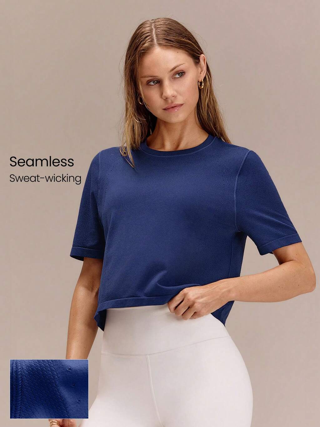 超微細ソフト シームレス 涼しさキープ 吸汗速乾 ストレッチ リラックスフィット クロップド クルーネック デイリーカジュアル 夏用