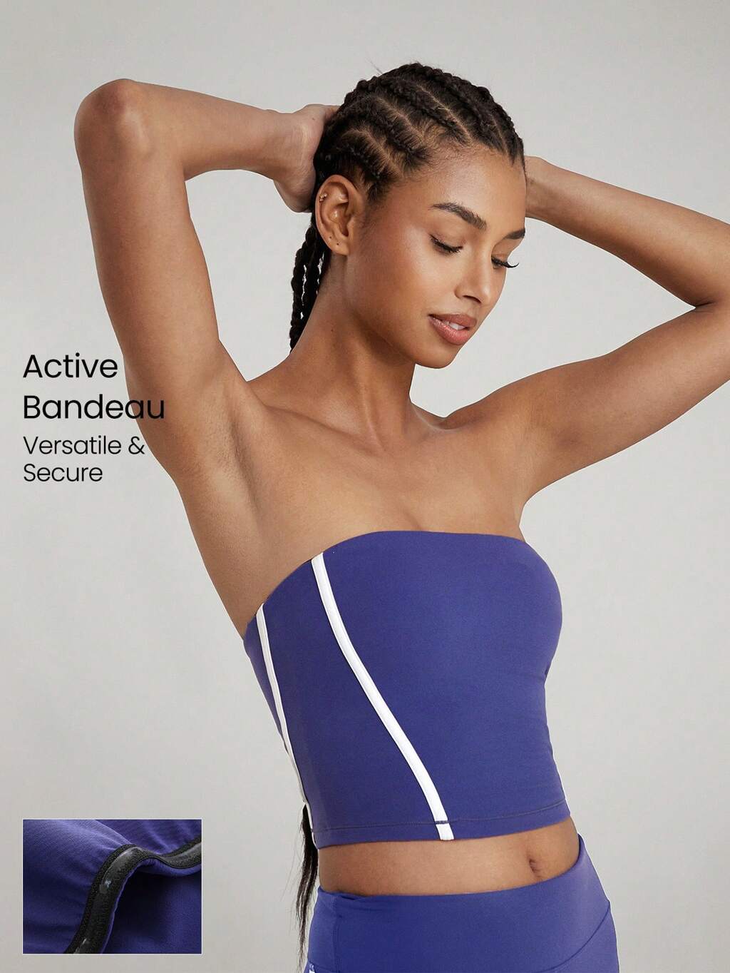 FeatherFit™-Sculptレベルアップコントラストストリップコルセット滑り止め クロップド バンドゥ チューブトップブラトップ低インパクトヨガ ピラティス デイリーアクティブウェア取り外し可能なカップ