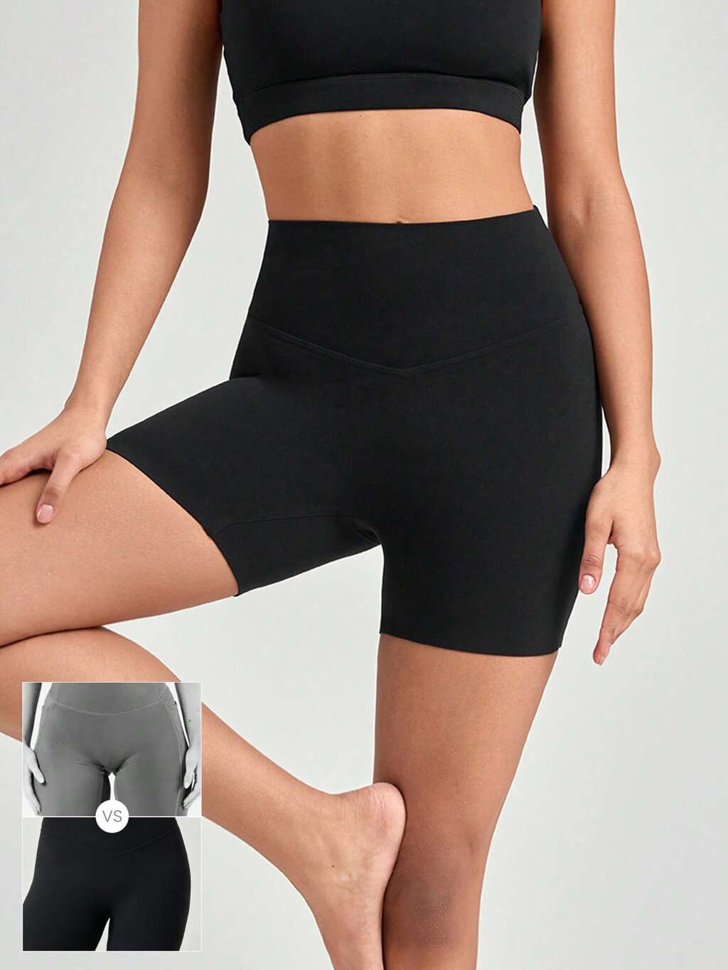 2.5인치 FeatherFit™ 빠른 신축성 흡습 스트레치 통풍 내장 속옷 논슬립 그립 크로스오버 허리 액티브 바이크 반바지, 로우 임팩트 요가 필라테스 스튜디오 체육관 일상용