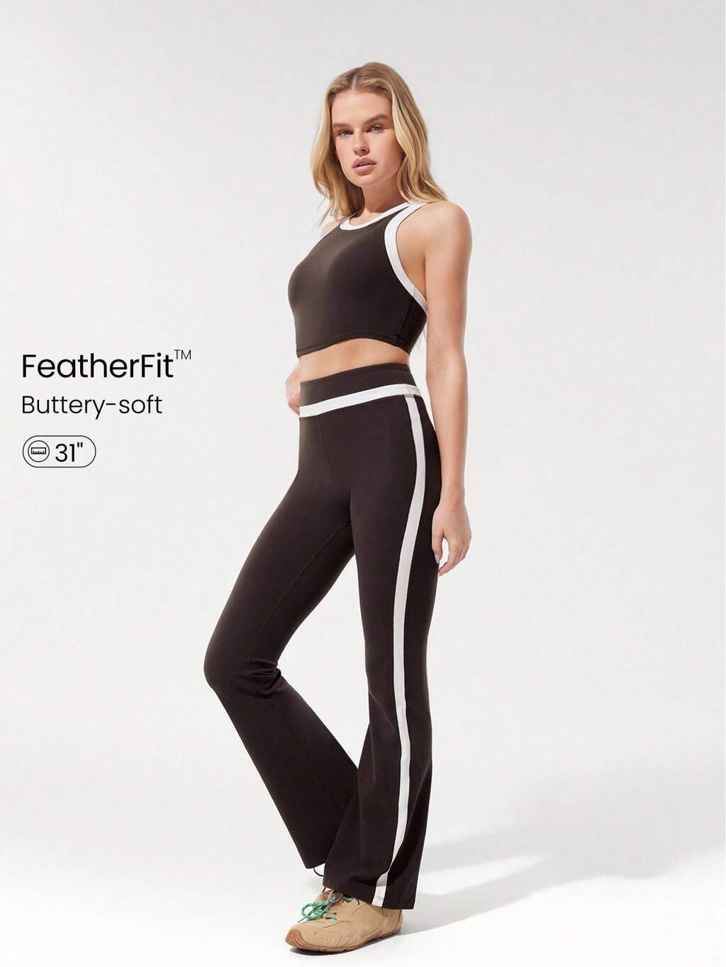 31" FeatherFit™ 대비되는 옆면 스트라이프 스플릿 헴 플레어 레깅스 낮은 충격 요가 필라테스 스튜디오 데일리 캐주얼 웨어