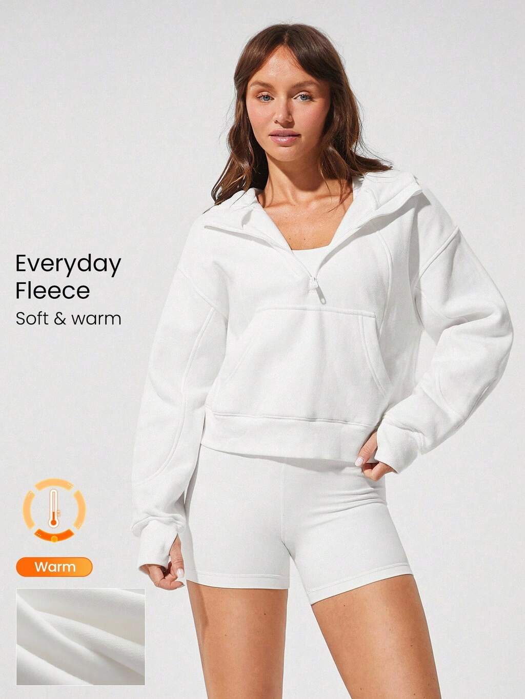 일상적인 플리스 따듯하게 유지 포켓 내부 메쉬 엄지 구멍 오버사이즈 반집업 후드 일상적인 캐주얼