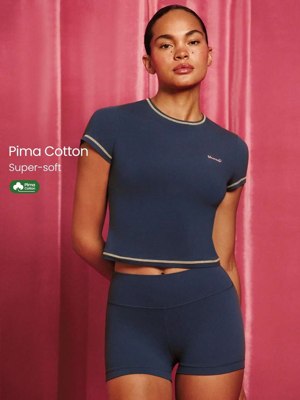 발렌타인 데이 피마 코튼 에브리데이 크러쉬 대비 컬러 스티치 자수 로고 슬림핏 허리 길이 크루넥 티셔츠 데일리 캐주얼웨어