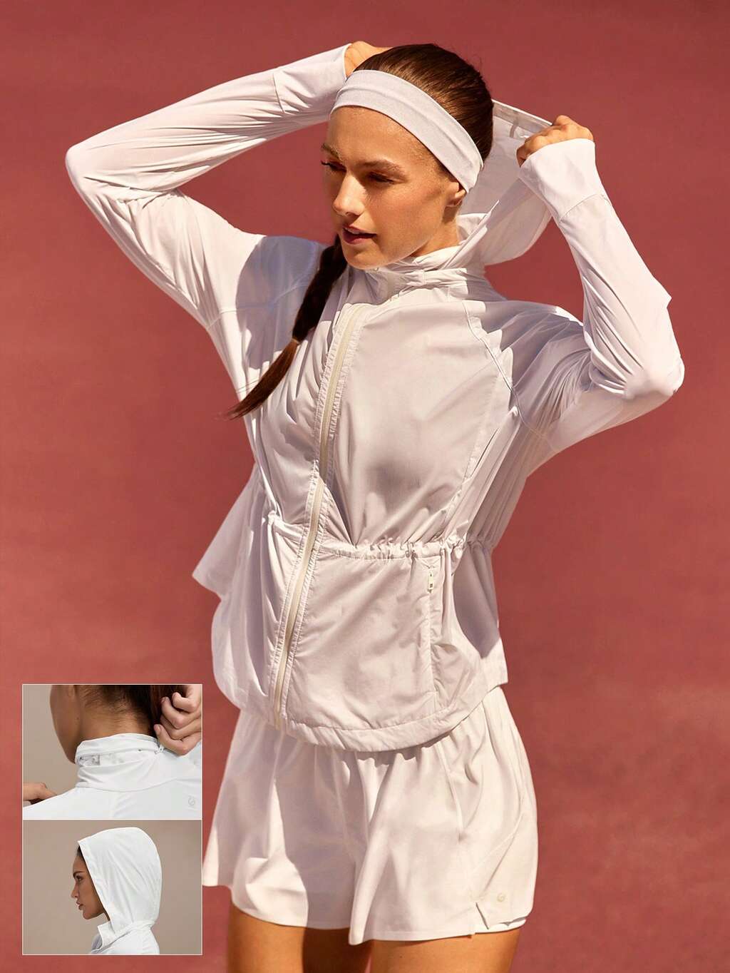움직임을 유지하는 힙 길이의 편안한 핏 조절 가능한 드로스트링 허리 2가지 착용 방식 후드 러닝 재킷 조깅 야외 운동 헬스장 일상 활동복