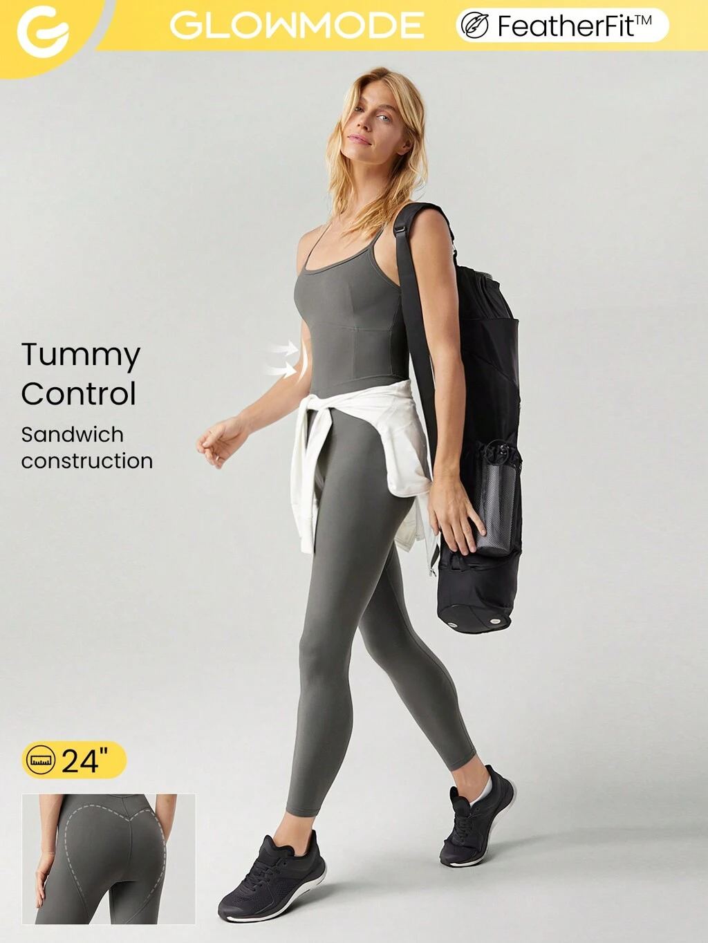 24인치 FeatherFit™ 레벨업 배 조절 스쿱 목 하트 모양 엉덩이 2웨이 스트랩 점프수트 바디수트 로우 임팩트 요가 일상용