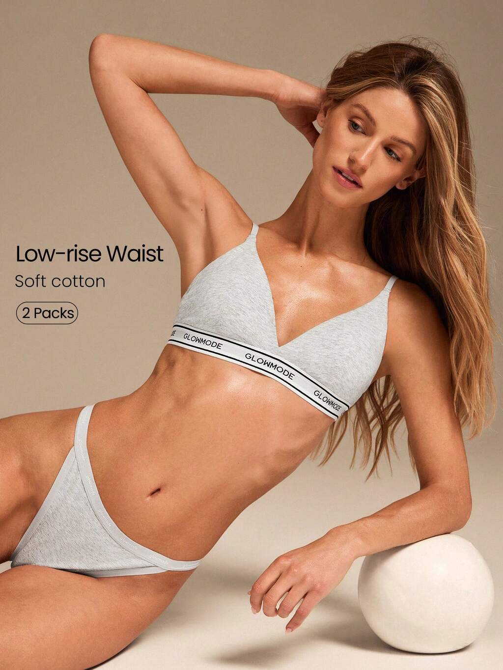 2팩 칠 앤 시크 면 혼방 부드럽고 통기성 좋은 땀 흡수 컬러 대비 로고 허리 밴드 로우 라이즈 끈 데일리 캐주얼 웨어
