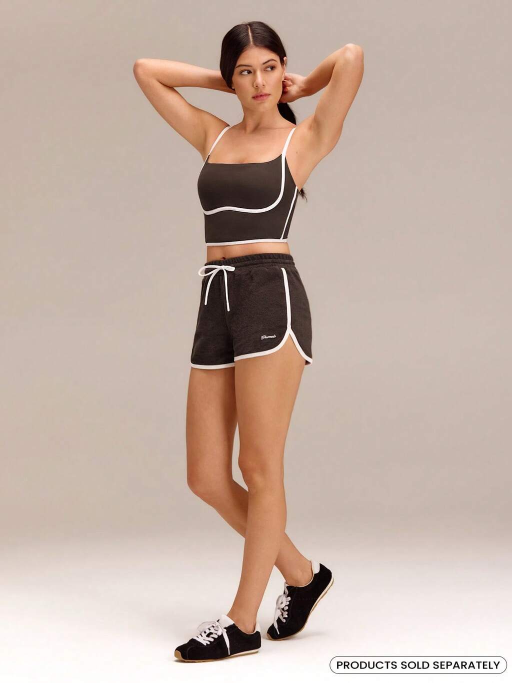 Glow On The Go Soft Sweat-Wicking Contrasting Trim Embroidered Hem Logo Back Pocket Shorts Outdoor Daily Casual Wear