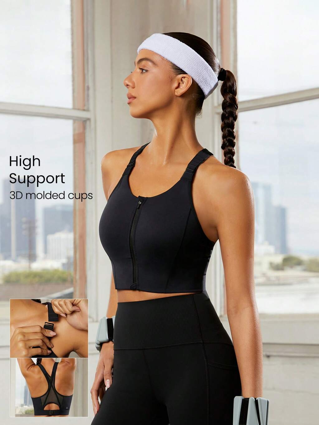 高サポート ジップフロント バックル付きレーサーバック スポーツブラジャー ジム ワークアウト アクティブタンク クイックドライ 吸湿速乾
