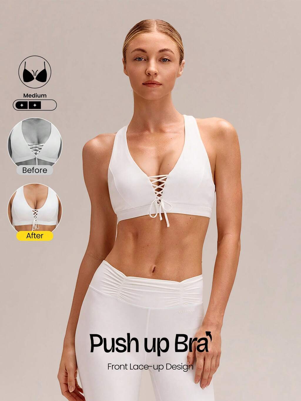 FeatherFit™-Sculpt PowerLace V-Neck Push-Up Racerback Lace-Up Sports Bra Training Running Workout Gym Daily Active Wear