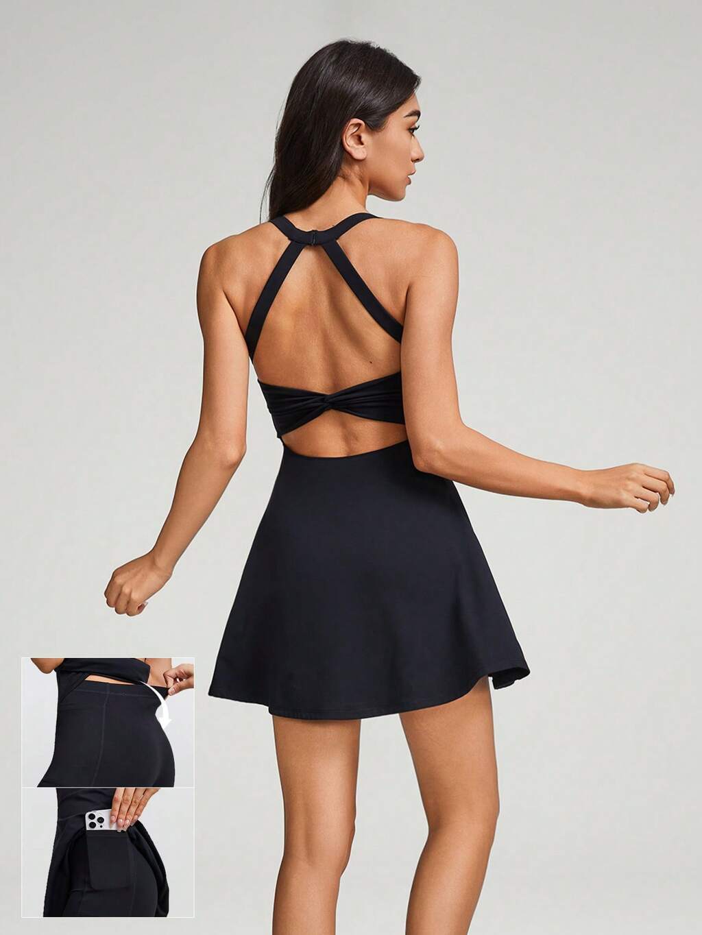 FeatherFit™-Air Game Set A-Line Built-In Peekaboo Short Knotted Pocket Halter Dress Low Impact Daily Quick Dry Moisture Wicking