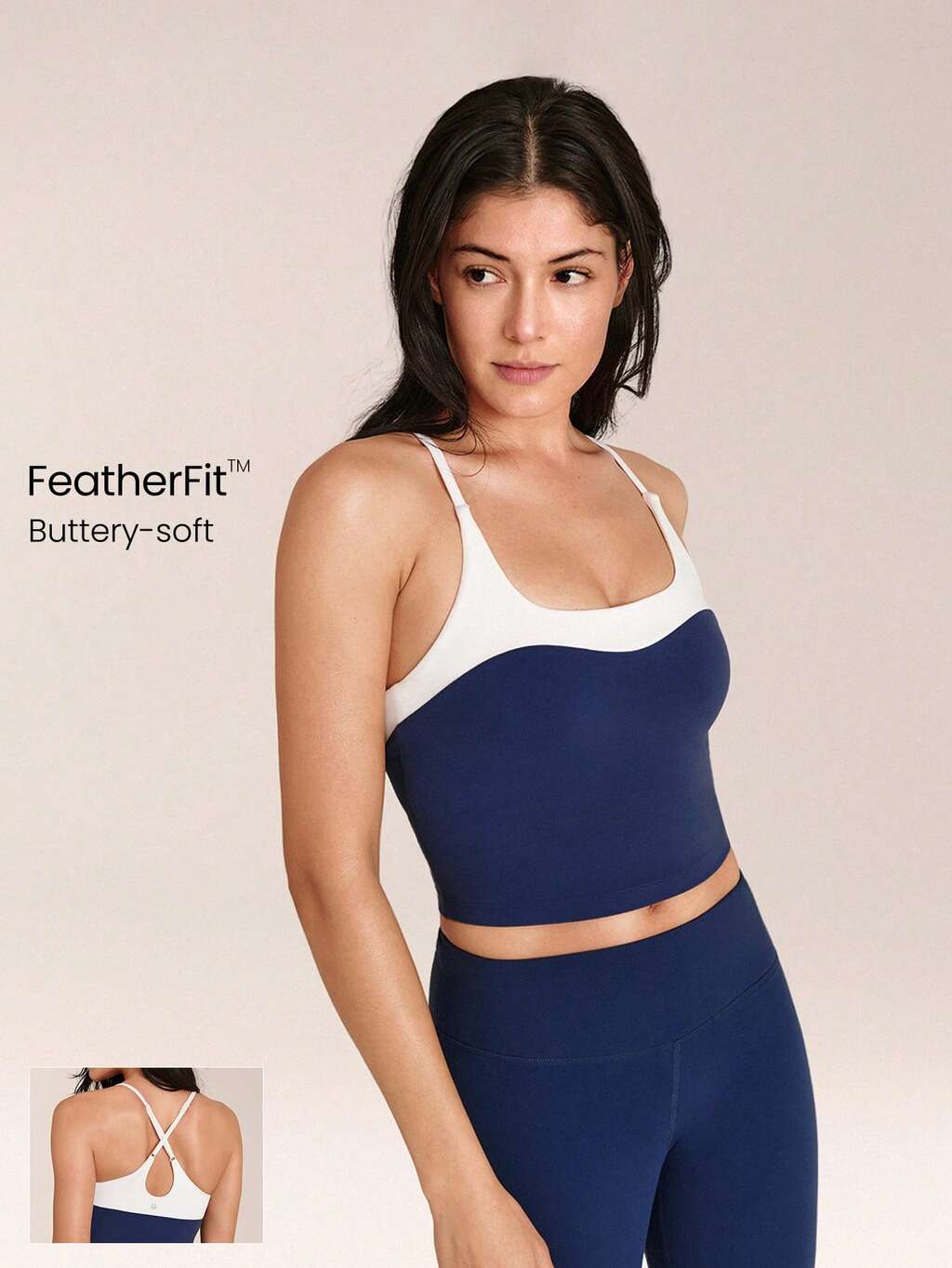 FeatherFit™ Energizer Slim Fit Color Contrast Crossover Straps Low Neckline Removable Cups Cropped Active Tank Low-Impact Yoga Pilates Studio Daily Casual Wear Fall Winter