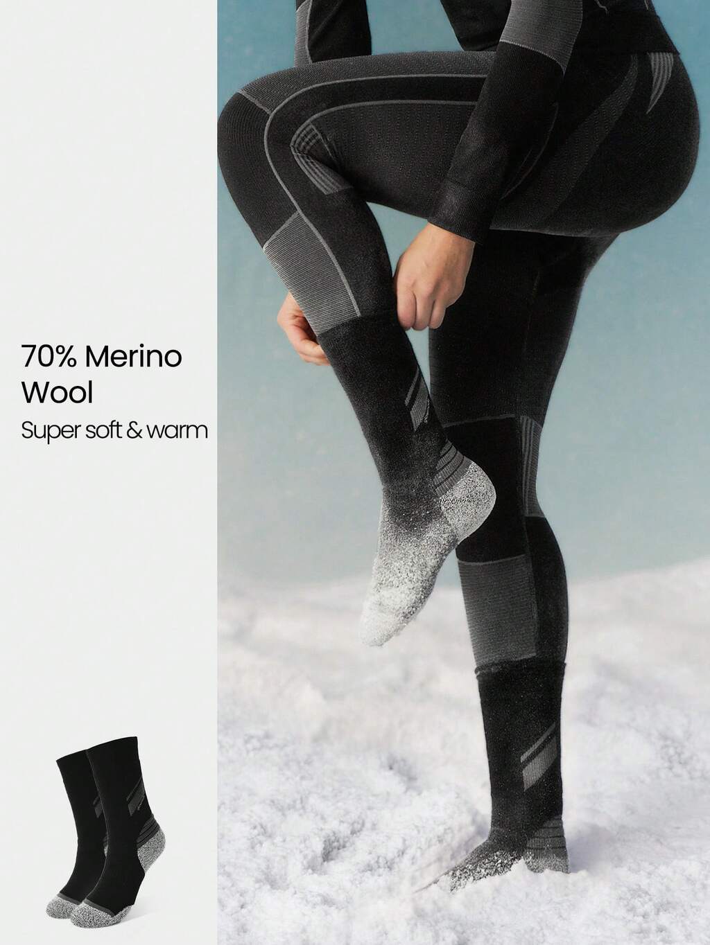 1-Pair Skiing Collection Frost Ease Cozy Warm Merino-Wool Blend Arch Ankle Support Cuffs Seamless Toe Knee-High Socks Outdoor Daily Active Wear Spring Summer