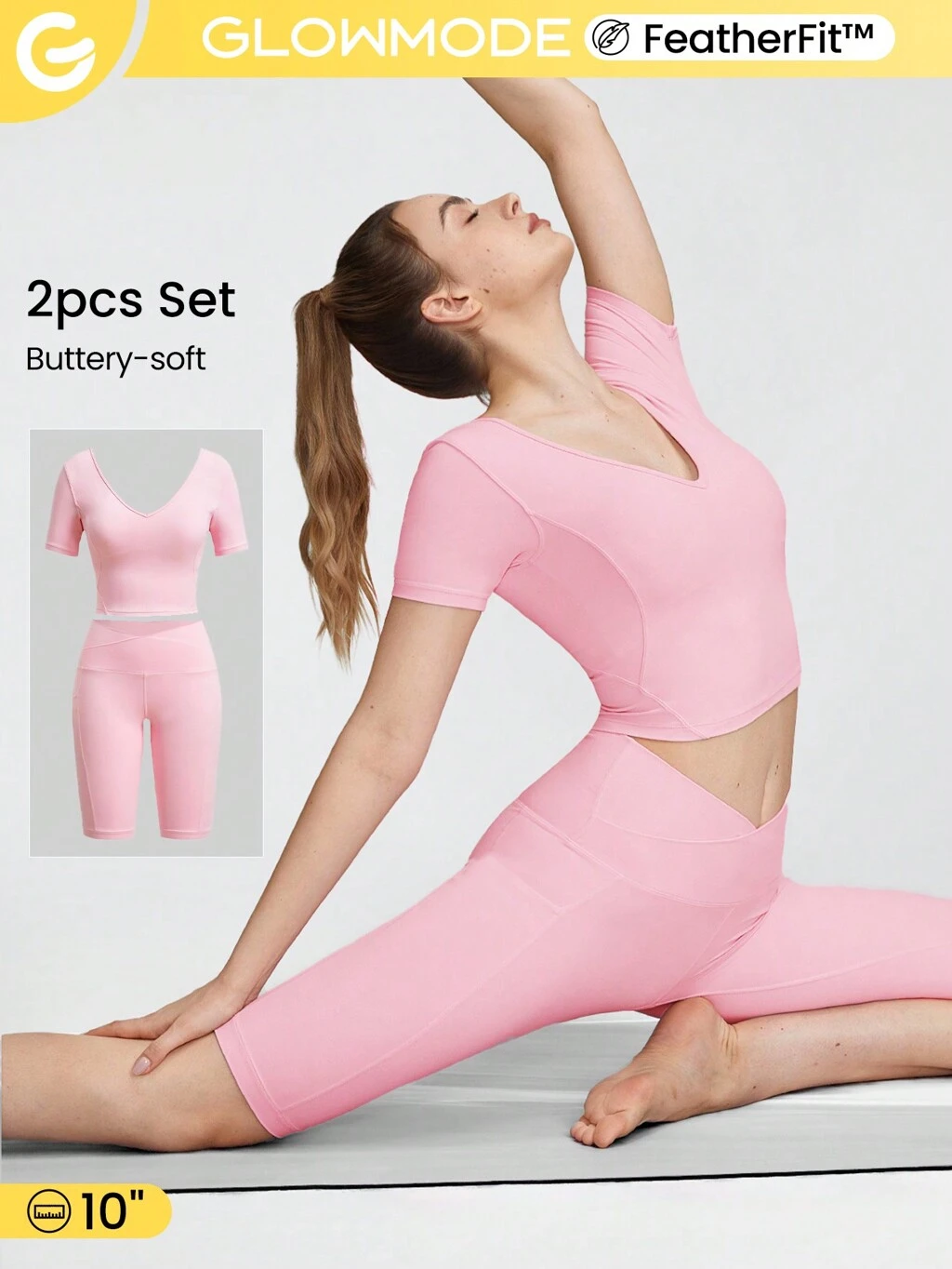 Conjunto de top corto con T-strap y shorts de ciclista de talle alto FeatherFit™