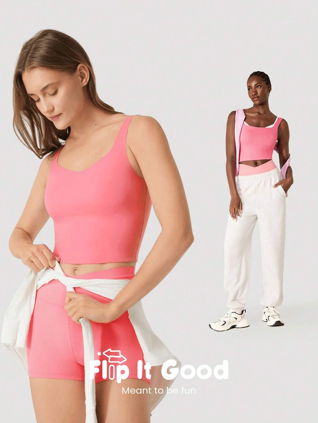 Camisa de tirantes ultraligera y reversible con adhesivo de agarre, apta para yoga de bajo impacto, estudio y gimnasio, con copas extraíbles
