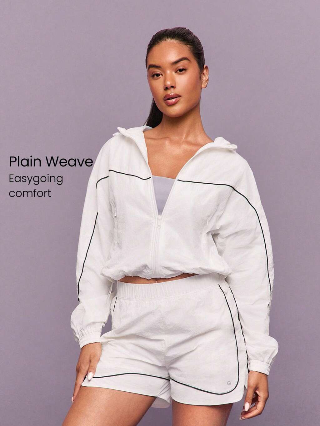 Chaqueta con capucha cortavientos ligera y suave con ribete de contraste, banda elástica ajustable, para uso diario casual, entrenamiento, running, senderismo y gimnasio