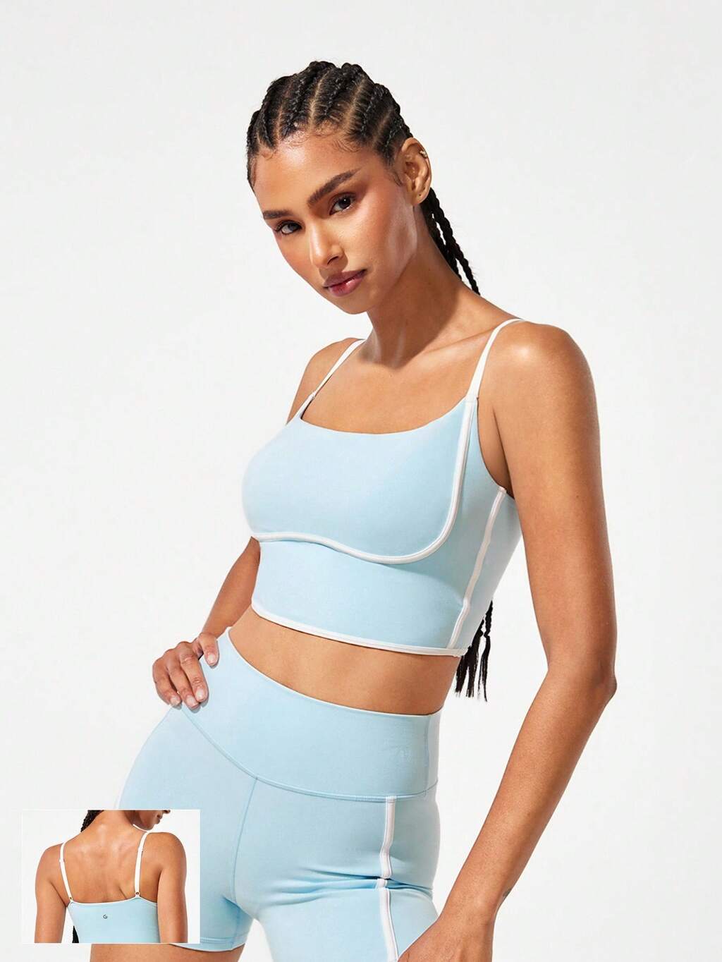 FeatherFit™ Listo Conjunto de Flujo Sujetador Deportivo de Halter con Cuello Cuadrado y Espalda Cruzada, de Bajo Impacto para Yoga, Pilates, Estudio y Uso Casual Diario, con Copas Desmontables