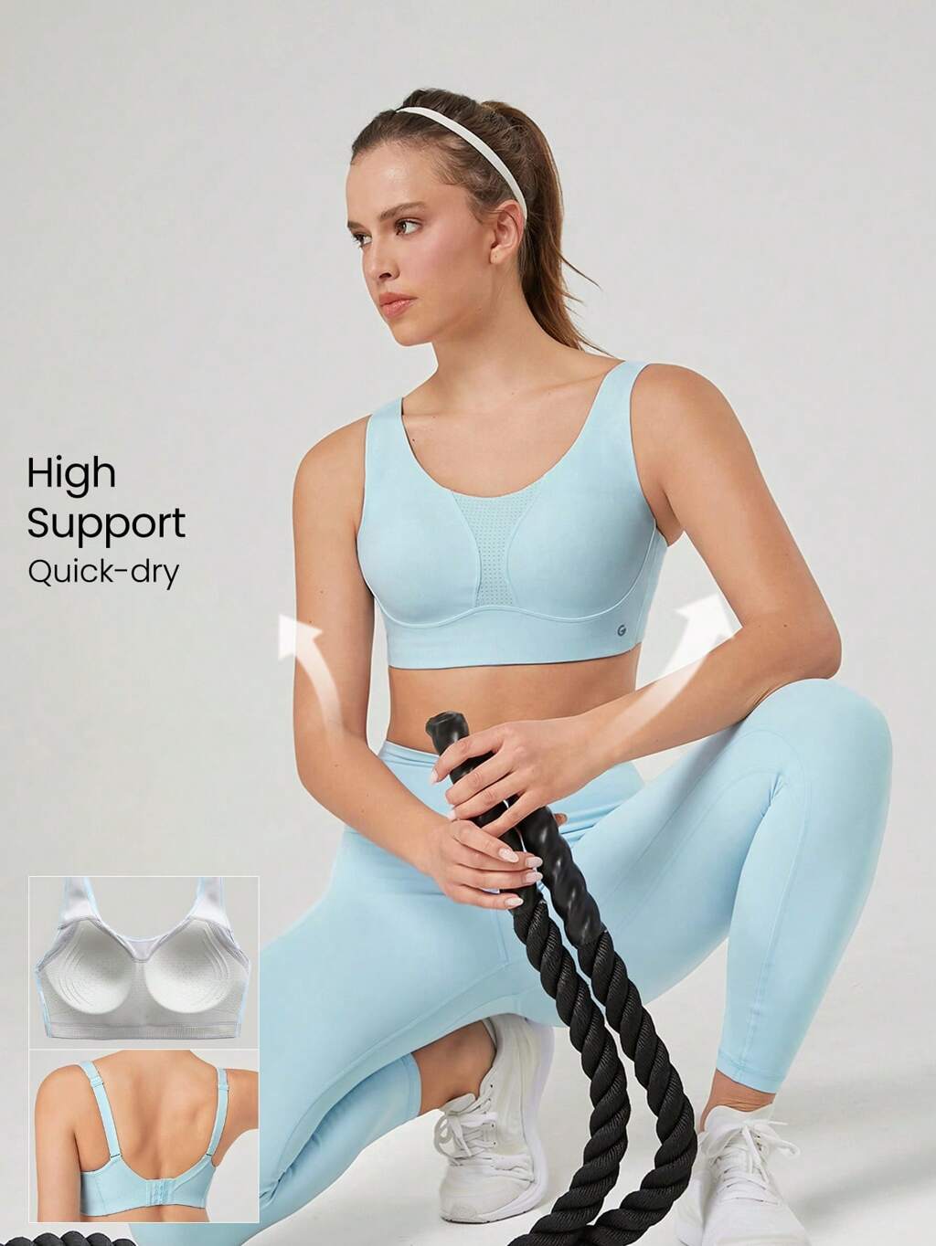 Sujetador deportivo de impacto medio con tiras de malla suave y absorbente que te da soporte para correr, trotar, entrenar y hacer ejercicio en el gimnasio, con copas extraíbles