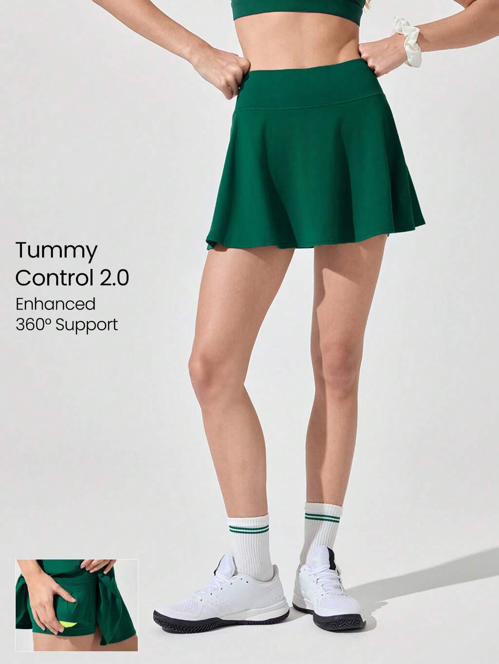 Falda pantalón de tenis FeatherFit™-Air con control de abdomen, bolsillo incorporado, tiras antideslizantes, soporte ligero, de secado rápido y absorción de humedad, apta para tenis y golf