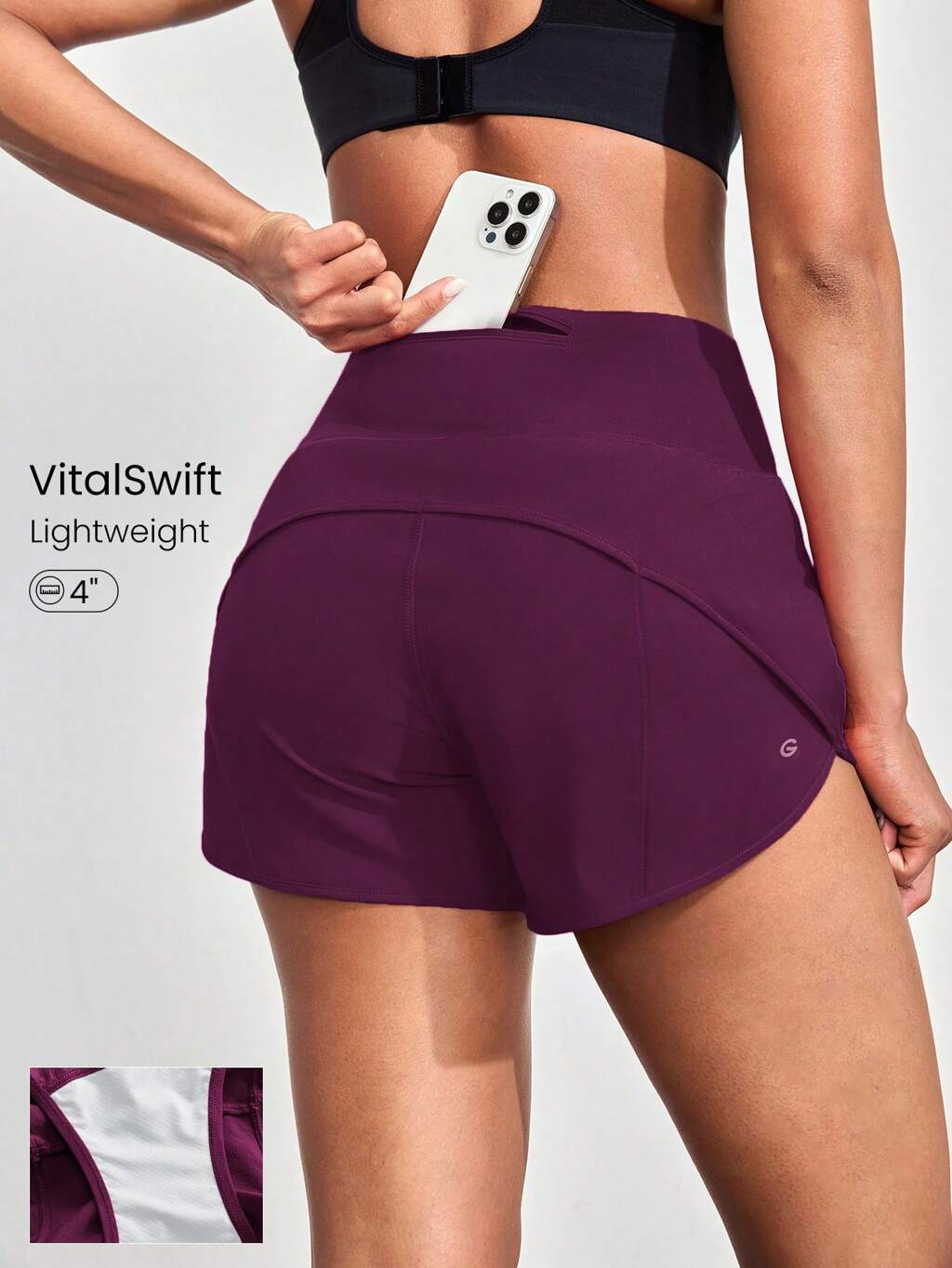 4" VitalSwift Quick-Dry Ultralekkie spodenki do biegania z wysokim stanem i ściągaczem w pasie, z wbudowaną kieszenią antyzapachową, do treningu o dużym wpływie
