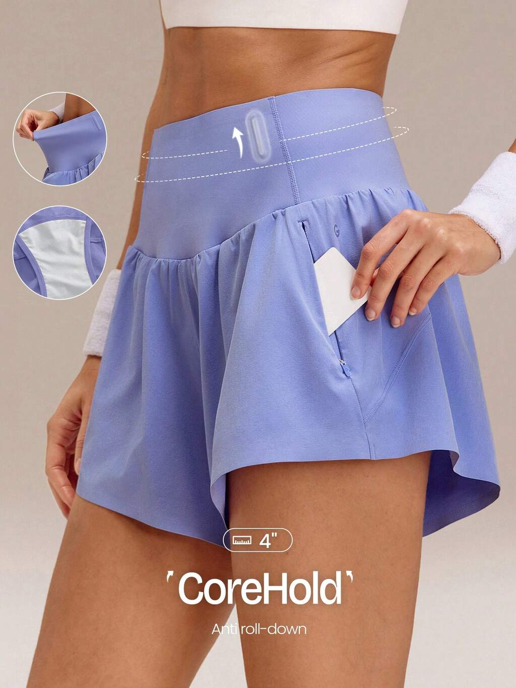 FeatherFit™-Air Odprowadzanie potu Szybkoschnąca Kontrola brzucha Bardzo wysoki stan Spódnica z linią bioder w kształcie litery V Z wbudowanymi spodenkami Kieszenie boczne Uchwyty antypoślizgowe Tenis Golf Pickleball Codzienne noszenie