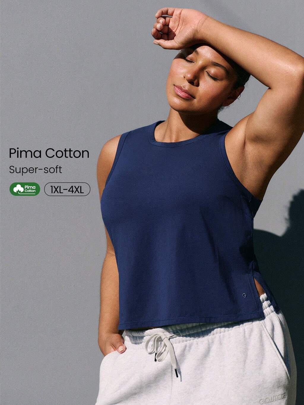 Plus Size Pima Cotton City Beat Lekki, oddychający, elastyczny top z rozcięciami po bokach, odblaskowym logo, krótki top na co dzień